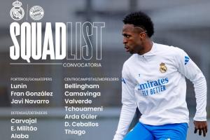 体育资讯04月07日讯 皇马战拜仁名单:维尼修斯、姆巴佩领衔