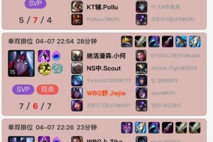 体育资讯4月8日讯 韩服排位对局,WBG打野jijie连撞三把NS中单scout全部输掉,其中两把队友、一把对手;
